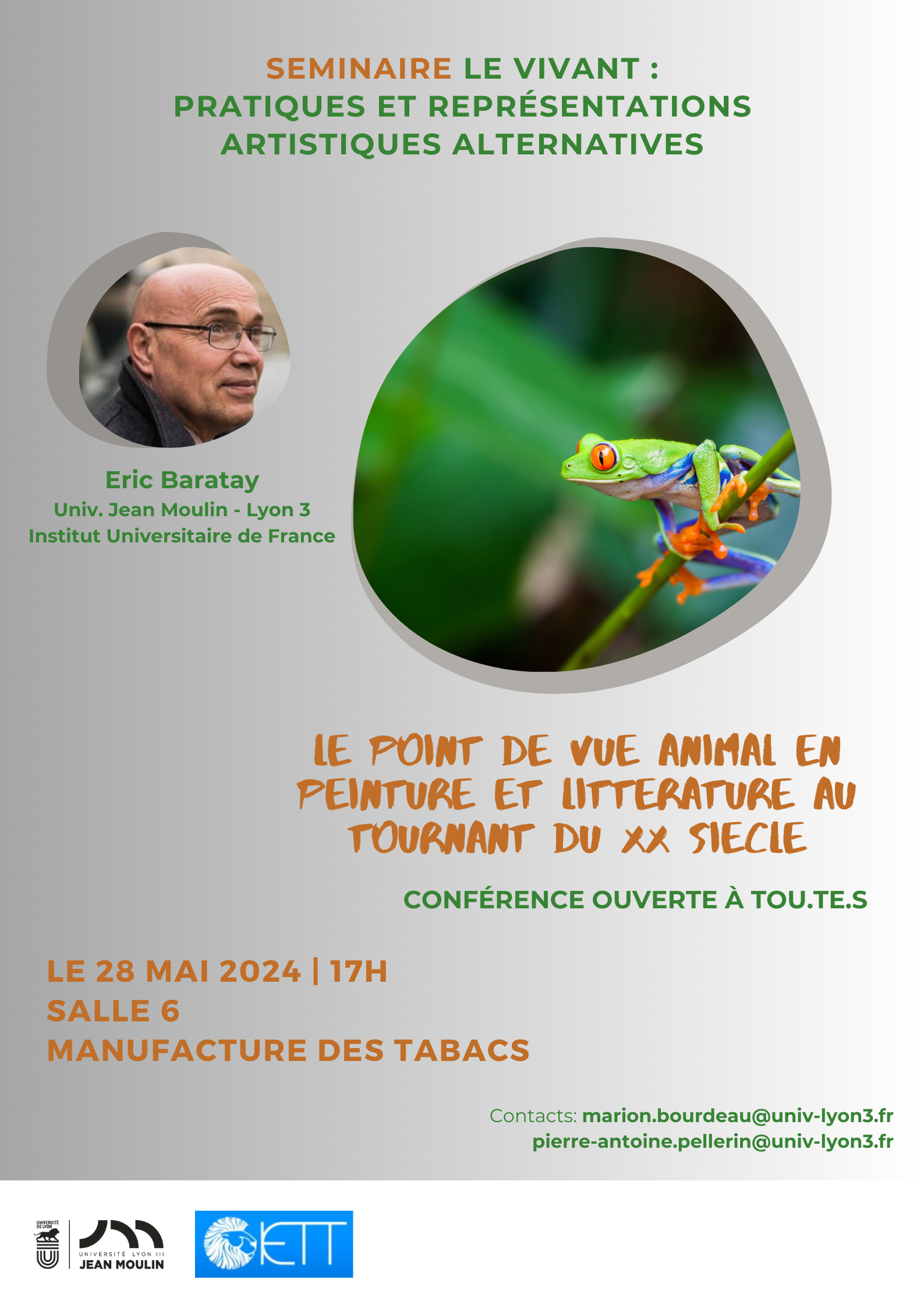 Les deux premières séances du séminaire « Le vivant : pratiques et représentations artistiques alternatives », organisé par l’IETT et l’Université Jean Moulin – Lyon 3 débutent le 28 mai 2024